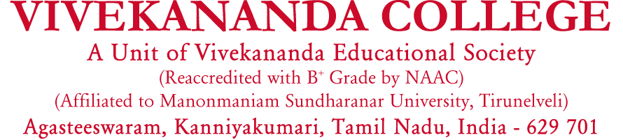 VivekanandaCollege was established in July 1965 by the Vivekananda Educational Society, Agasteeswaram and affiliated to Manonmaniam Sundaranar University, Tirunelveli. It is a co-educational institution. The college has to its credit 09 Aided U.G. Courses, 02 Aided P.G. Courses, 02 Self-financing U.G. Courses, 04 Self-financing P.G. Courses, 02 M.Phil.Courses and also a Research Centre for 02 Ph.D. Programmes. Further U.G.C. sponsored courses which include 02 B.Voc.Courses and 03 Certificate Coursesare introduced in our institution from the academic year 2016-17 onwards.